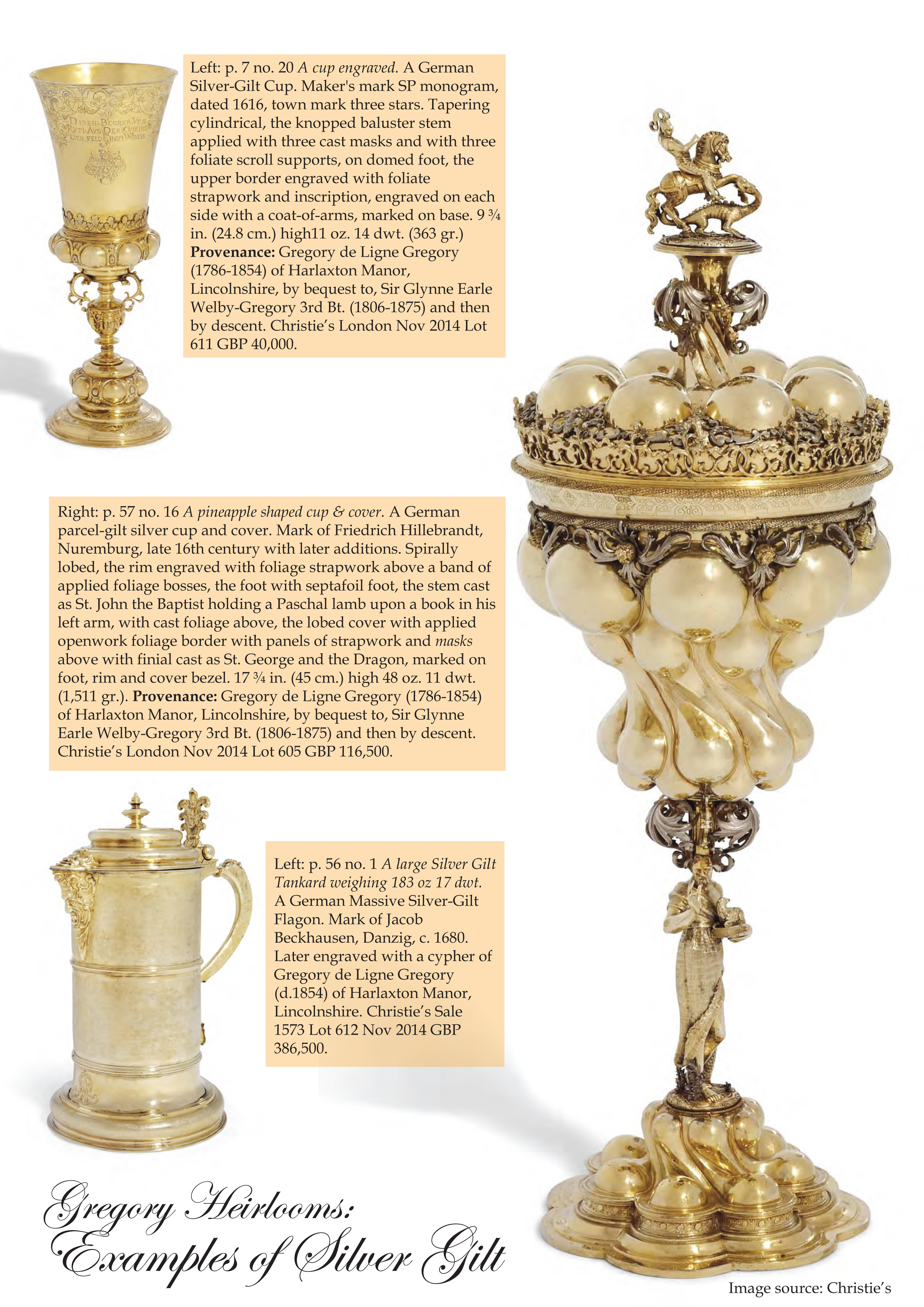 Source: National Archives, London. Cause: D’Eyncourt v Gregory (i) Inventory of articles (heirlooms, including library and works of art) at Harlaxton New Manor House, [LINCS.] delivered up by defendant John Sherwin Gregory in pursuance of orders 2 July 1864, 9 Aug. 1866 and 7 Dec. 1866; bound in red leather (ii) copy of foregoing. Deposited (i) 11 Dec. 1868 and (ii) by plaintiff [sic] Sir William Earles Welby-Gregory, bart., 28 June 1876. Document Ref. J90/1217 [copy held in Manor Archives]
