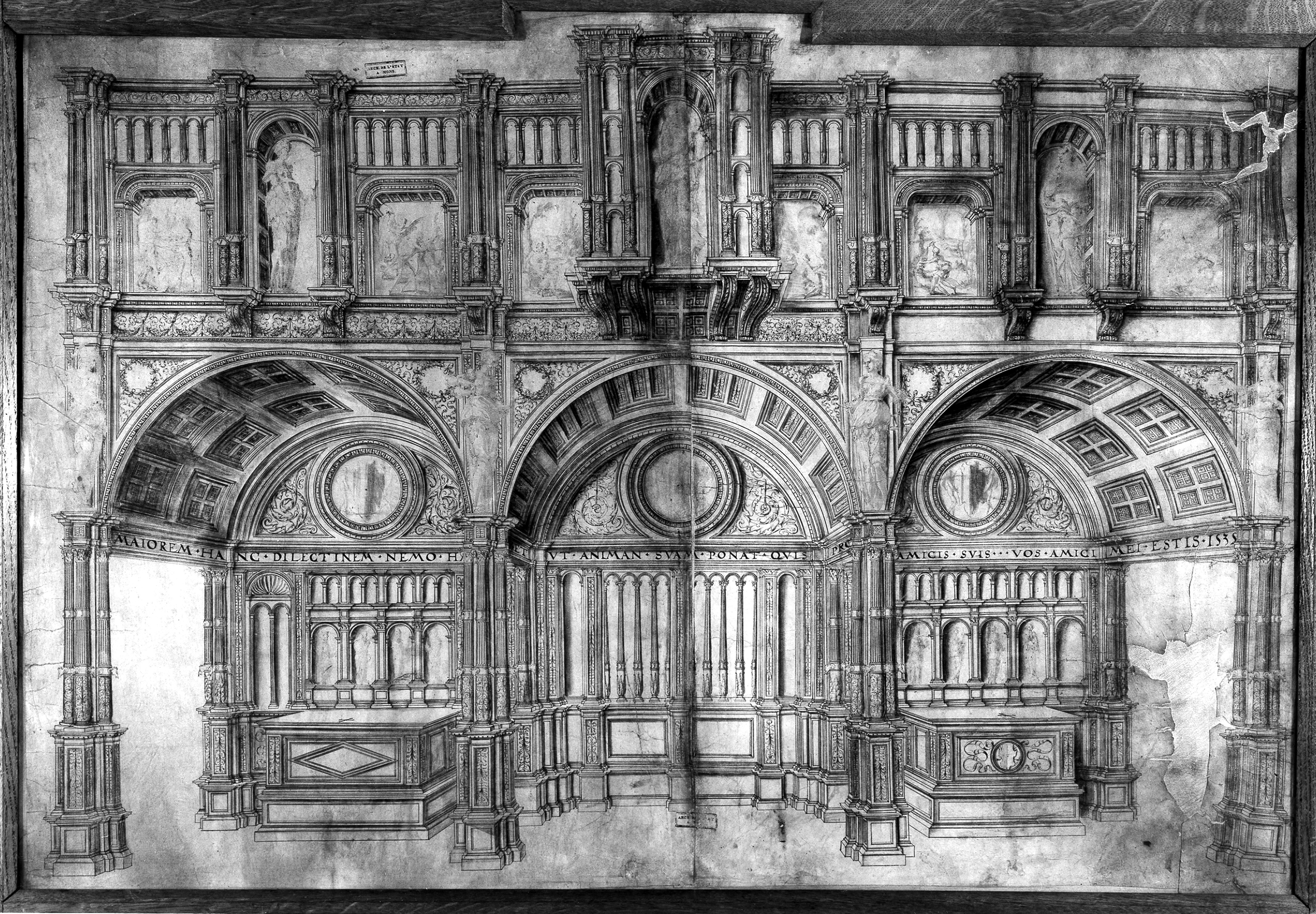Elevation sketch of the original jube screen, Sainte-Waudru Church (front side nave)