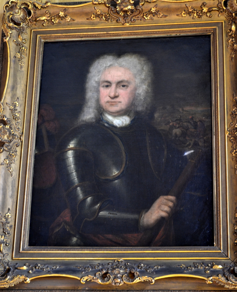 Half length, wearing armour and carrying a baton. An engagement beyond.
